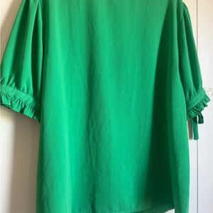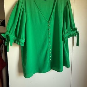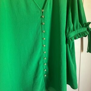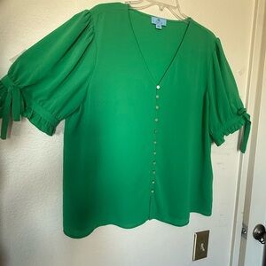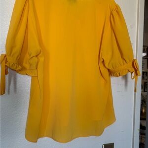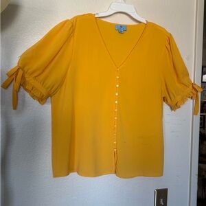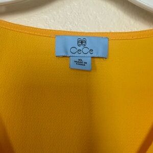 Vibrant yellow CeCe top. Simple and stylish.and The Green there is 2 blouses the yellow have a title spot it es of the jeans e belt