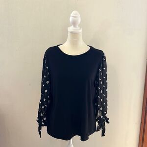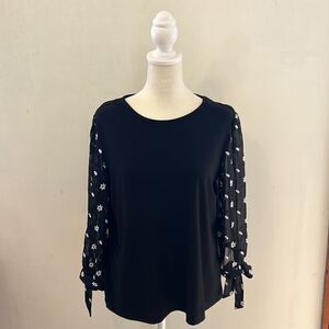 CeCe black blouse with sheer bottom tie and flowers Size M