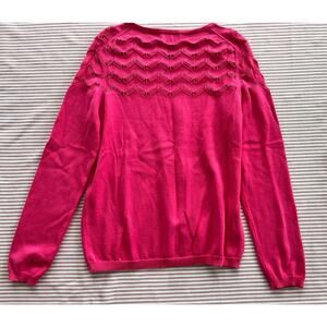 sweater, pink pullover, chevron pattern, women's sweater, casual wear, crew neck, long sleeve, soft blend, medium size, machine washable, pre-owned.