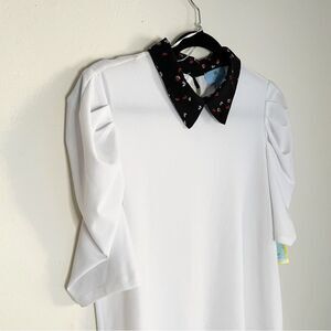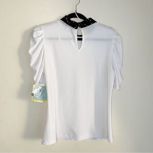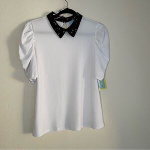 CeCe by Cynthia Steffe Printed collared Shirt M NWOT white w/ black collar