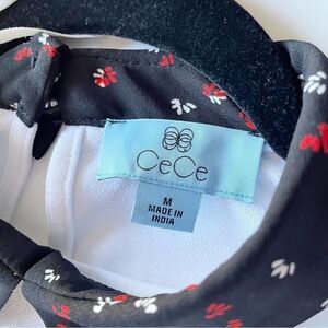 CeCe by Cynthia Steffe Printed collared Shirt M white w/ black collar