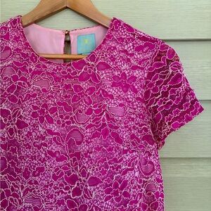 CeCe lace mini dress fun flirty sheath fuchsia pink Cynthia Steffe sz 2 EUC