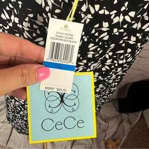 Chic black and white midi dress by CeCe. Features a stylish pattern. Perfect for versatile wear.