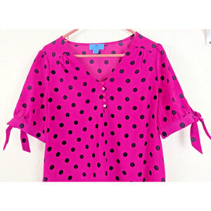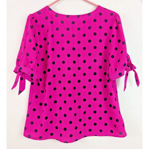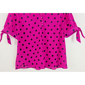 CeCe sz M Polka Dot Puff Sleeve Top or Blouse pink n black tie sleeves 0746