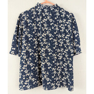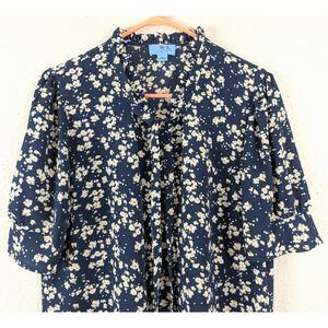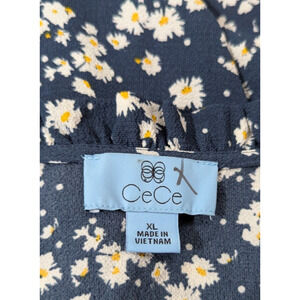 CeCe sz XL Blouse v-neck ties textured fabric blue floral print top 2493