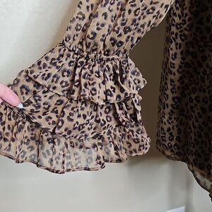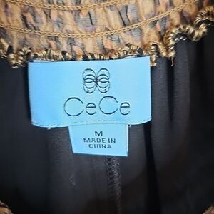 CeCe Black and Tan Animal Print Off Shoulder Ruffle Sleeve Blouse Medium