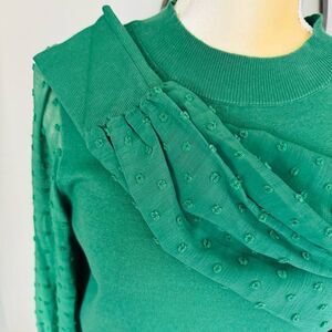 CeCe Clip Dot Sleeve Sweater, Holiday Christmas Party Top, Green, Size Small NWT