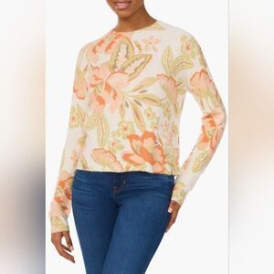 CeCe Cream and Orange Floral Sweater Sz L