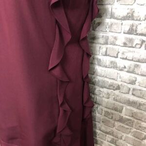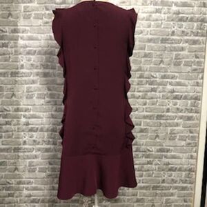 SIZE 2 IN PERFECT LIKE NEW CONDITION. THIS DRESS HAS NEVER BEEN WORN BUT DOES NOT HAVE THE TAGS ATTACHED. RUFFLE DETAIL DOWN SIDES AND AT CAP SLEEVES.