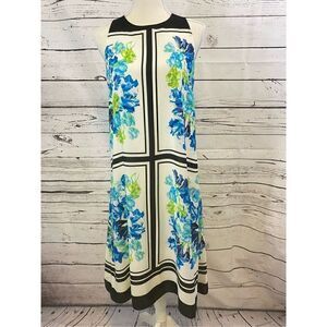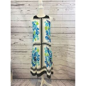 CeCe sleeveless dress in white, blue and black. New with tags. Beautiful midi dress.