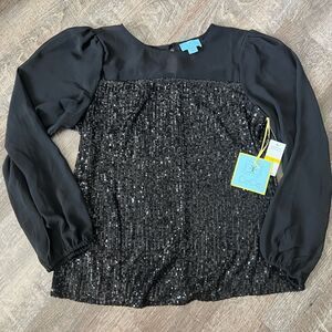 This listing is for a NWT's Cece Long Sleeve Sequin Blouse in black, in size medium. Please see the photos for measurements.