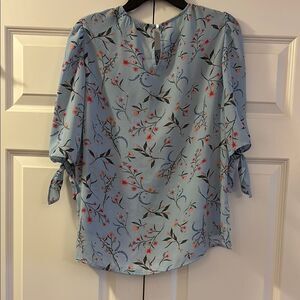This CeCe blouse showcases a relaxed fit with charming tie 3/4 sleeves, perfect for a stylish yet comfortable look. The pink and blue hues create a delightful contrast, adding a touch of sophistication to any outfit. Its lightweight fabric ensures a breezy feel, ideal for all-day wear. NWOT Smoke free & Pet free home. See ALL photos for complete description/details.