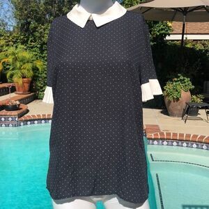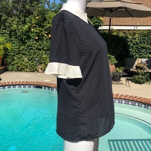 CeCe Pleat Sleeve Polka Dot Blouse Size Small