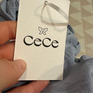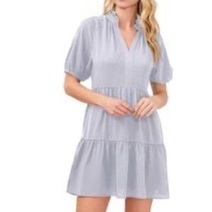 CeCe Ruffle Mock V-Neck Short Puffed Sleeve Tiered Mini Dress slate blue