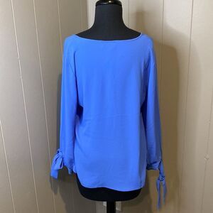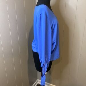 CeCe Small Blouse Relaxed Fit V Neck Tied Cuffs Uneven Hem