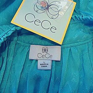 CeCe Top Sleeveless Tank Ruffled Round Neckline Keyhole Closure Blue Size Lg