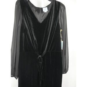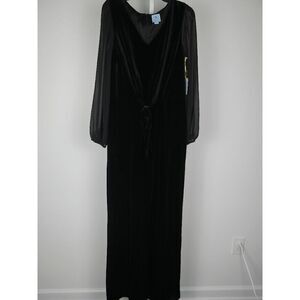 CeCe Women's Black Velvet Long-Sleeve Tie-Waist V-Neck Jumpsuit S