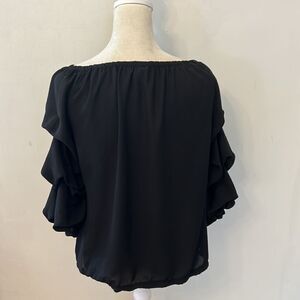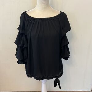 CeCe black tie waist statement sleeve blouse Size S EUC