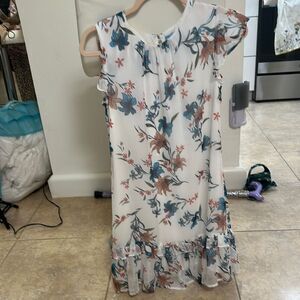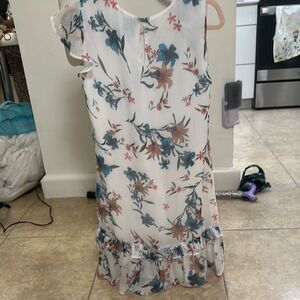CeCe expressive lilies with flutter sleeve dress and soft ecru