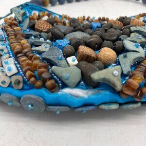 Cebu Signature Collection Beaded Art Statement Purse Handbag Blue Evening Party
