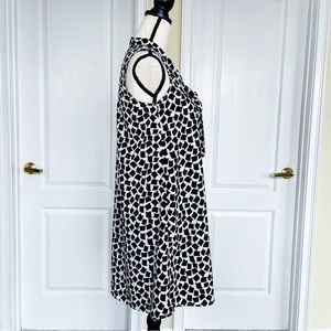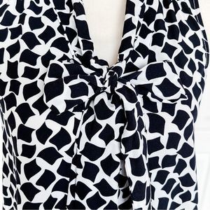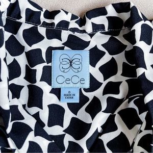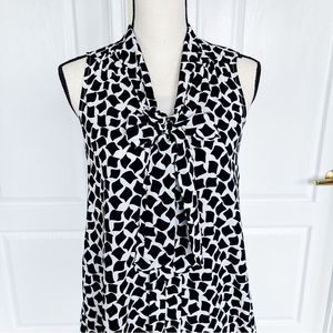 Cece 0 Black White Floating Rhombus Bow Tie Neck Ruffle Back Sleeveless Dress