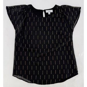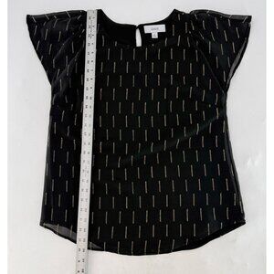 Cece Black Chiffon Flutter Sleeve Blouse Lined Metallic Print Sz M Office Preppy