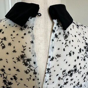 Cece Black White Floral print Sleeveless Collar Blouse Casual Tops M