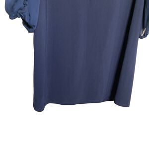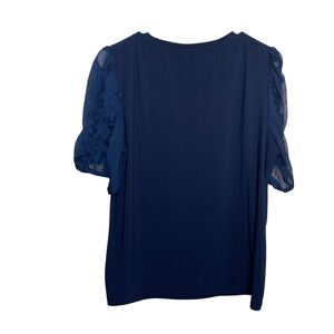 Cece Blouse Women's Large Blue Puff Sleeve Ruffle Short Sleeve Mesh Top