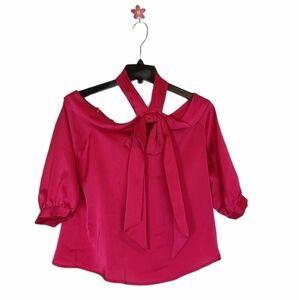 Cece Bow Off Shoulder Top Hot Pink Blouse XSmall NWT