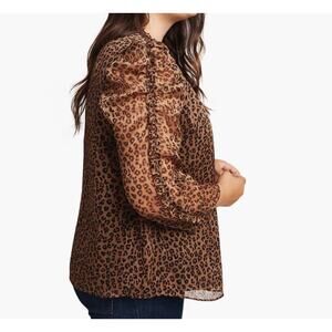 Cece Emery Ruffled Sheer Sleeve Leopard Print Shirt Womens Plus Size 1X