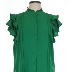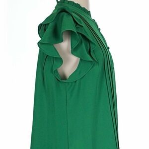 Chic green blouse with ruffled sleeves. Perfect for any occasion.