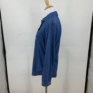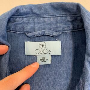CECE NORDSTROM CHAMBRAY TOP WOMENS XS EXTRA SMALL BLUE HIDDEN BUTTONS SHIRT
