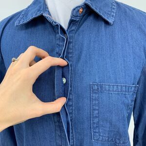 Cece Nordstrom Chambray Top Womens XS Extra Small Blue Hidden Buttons Shirt