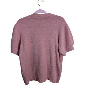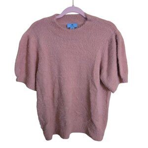 Cece Pink Eyelash Fuzzy Knit Puff Short Sleeve Round Neck Sweater Size L