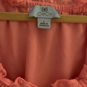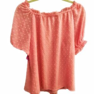 Cece Pink Puff Sleeve Textured Dots Chiffon Blouse. Size Large. Measure 17” P2P and is 27” long from shoulder to hem. This blouse is in excellent preowned condition with minimal wear. No stains or flaws.