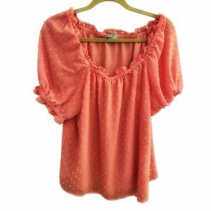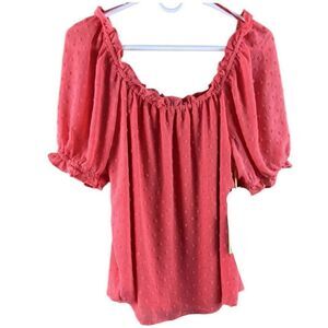 Cece Pink Puff Sleeve Textured Dots Blouse Size Large bohemian Fairycore EUC