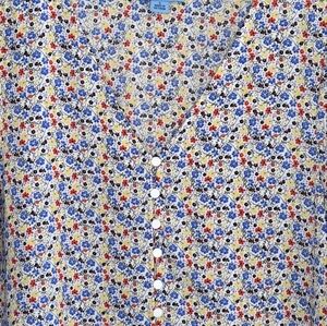 Cece | Red Yellow Blue White Ditsy Floral Short Ruffle Sleeve Blouse Size Small