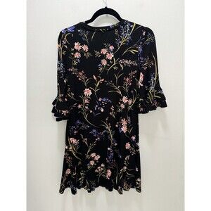 Cece Ruffled Cuff Black Floral Stretch Dress Size Small