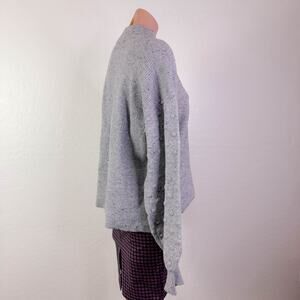 Cece Textured Dot Knit Balloon Sleeve Mock Crewneck Sweater Cute Gray sz XL NWT