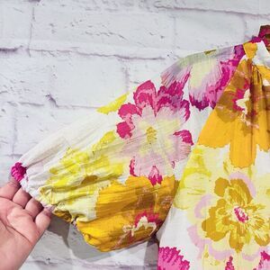 Cece V Neck Relaxed Short Sleeve Floral Print Tiered Babydoll Dress Size Small