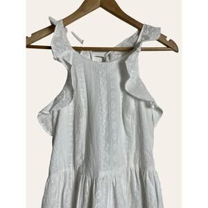 Cece White Eyelet Embroidered Atrapoy Ruffled Sleeveless Midi Dress Size 0