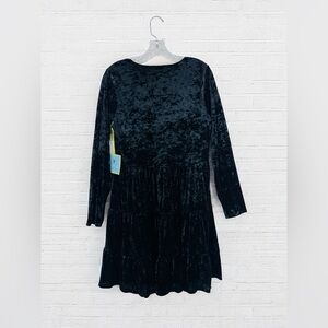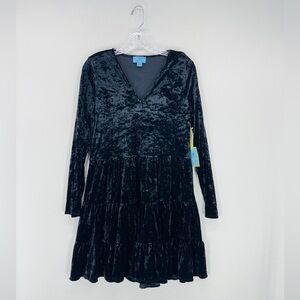 Cece Women's Velvet Velour V-Neck Mini Tiered Dress Black Size M Long Sleeve Witchy Fairy Grunge