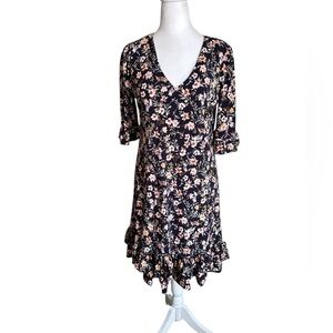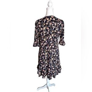 Cece Women's Floral-Print Elbow-Sleeve Ruffle Shift Dress Size Small