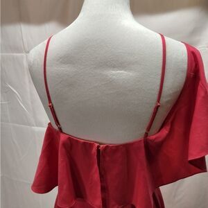 Cece Women's Hot Pink Jackie Cold Shoulder Ruffle Midi Dress Size 4