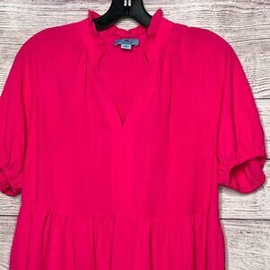 Cece Women's Pink Short Sleeve Tiered V-Neck Baby Doll Dress Size Small