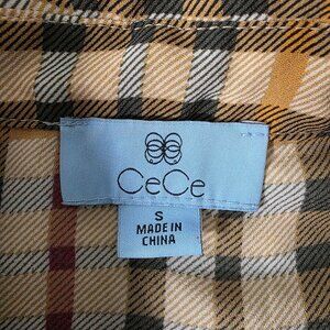 Cece Womens Plaid Button-Down Blouse With Black Bow Tie Collar, Small