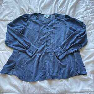 Cece Womens Size XS Blue Long Sleeve Blouse Button Up Polka Dots Flowy Office