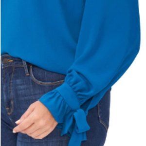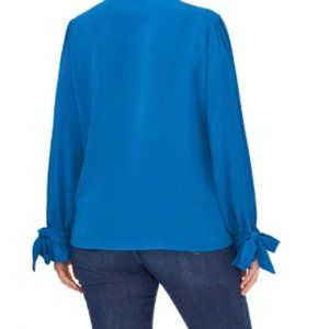 CeCe Women's Solid Long Sleeve V-Neck Poppy Tie Sleeve Blue Size 2X