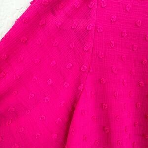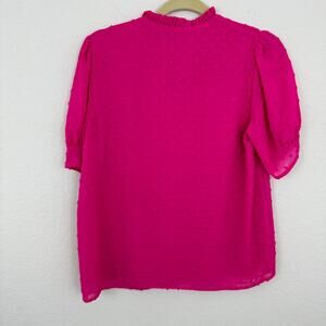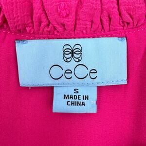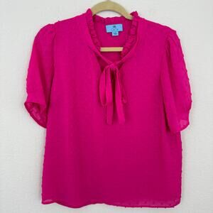 Cece Women's Swiss Dot Tie Ruffle Blouse Top Bright Pink Size S