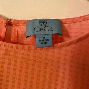 Great pre-owned condition CeCe peach blouse with slitted bell sleeves that have tie closures. Made of polyester. The front of shirt has a lining. Perfect for any occasion.